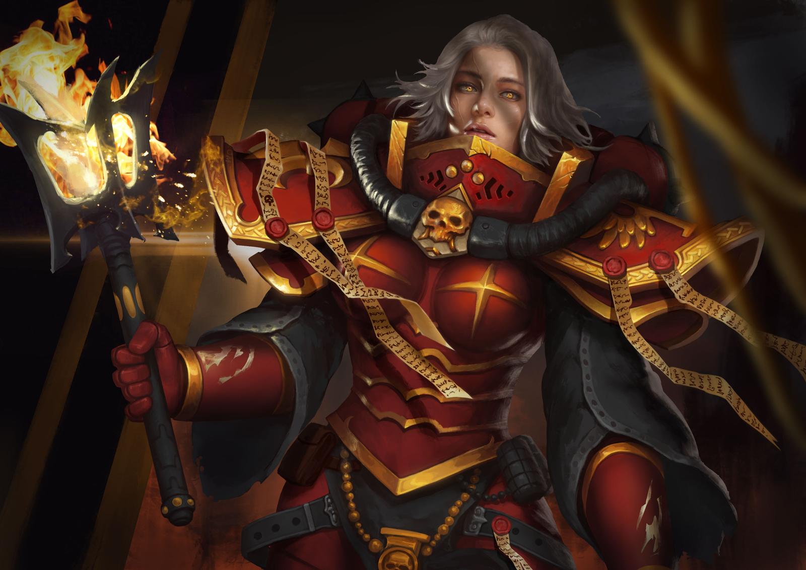 >>728876940It's 40,000 AD.Magic and demons exist because there is a parallel universe where the thoughts and emotions of sentient beings, like humans and intelligent aliens, takes physical form. This miasma of chaotic emotional power is known as Chaos. All magic and supernatural shit stems from this, including psychic powers. All souls are deposited into this dimension, usually referred to as the Warp, when they die, where they are typically torn apart by the demons inhabiting it.The strongest concentrations of Chaos take the forms of 4 extremely powerful beings known as Chaos Gods:>Khorne, god of war, strife and combat, associated with the color red>Tzeentch, god of scheming, knowledge, planning, easily the most nebulous and strange of the gods, associated with the color blue and bird imagery>Nurgle, god of disease, plague, rot and decay, associated with the color green>Slaanesh, god of lust, excess, hedonism and extremes, both in pleasure and pain, associated with the color purpleA really long ass time ago, a bunch of druids and mystical men became aware of Chaos and killed themselves at the same time, resulting in their combined psychically strong souls merging together in the Warp and being strong enough to fight it's way out, resulting in them being reincarnated as one being, now known as the Emperor. He is an immortal supergigachad dedicated to overcoming Chaos once and for all. He monitored humanity from the sidelines while a bunch of crazy shit happened, including a Terminator style AI uprising and a total societal collapse where technobarbarians ruled the world in warring tribes, before revealing himself to humanity, conquering it and taking total control of the new world order, which he labelled the Imperium.He made a ton of genetically enhanced ageless superhuman badass motherfuckers, the most badass of which rule their own military faction known as Chapters, and which he considered to be his own sons.cont.