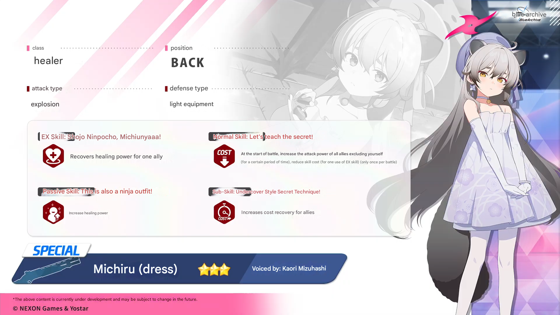 >>728947002She's a new version of S.Shiroko with the same battle start cost reduction and recovery passive. Only difference is she heals instead of defense down.People doing the newest raid difficulties will roll for sure, if you have Shiroko and play casually her value decreases a lot