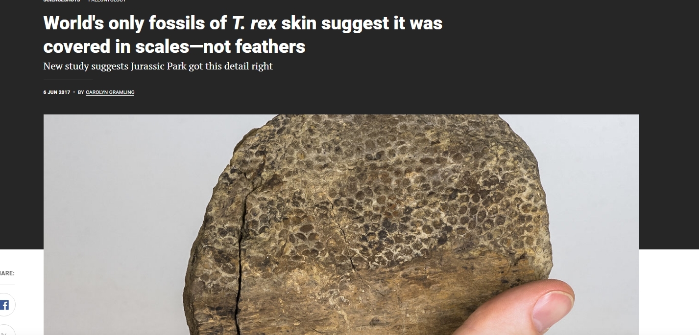 >>728905672>Acktually they are bumpsSoft skin with bumps hardly survive millions of years. That T rex skin fossil is scaly. And if T Rex do have have feathers, the feathers should be the thing to remain instead of skin.