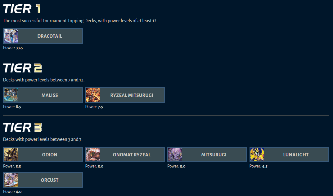 >>728947575Every new deck is always tiered because it's new and a lot of people play it. Those numbers plummet when the next set arrives and the story repeats again.