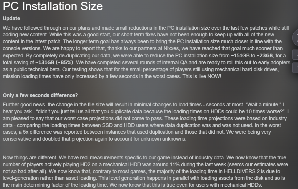 >>728921145>THEY DID NOT TEST IF HDDs ACTUALLY NEEDED THE BLOAT100% bullshit btwThey just couldn't optimize the game properly and went with the laziest option, then another team came in and fixed it in a weekend