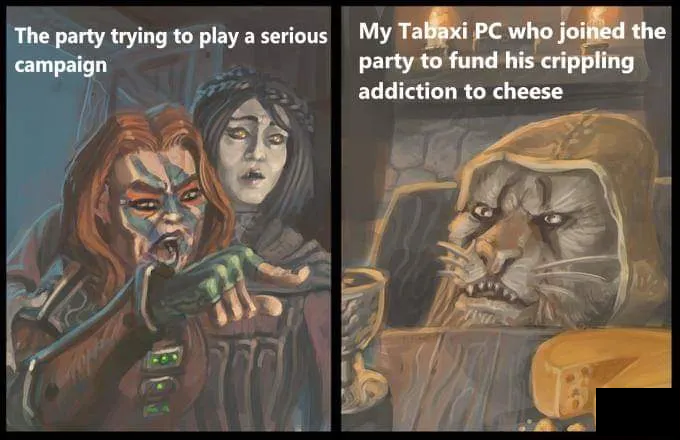 >>728930786I wish that was the worst you see in D&D but no everyone makes such gross lolrandom characters that the cat in the op pic seems serious