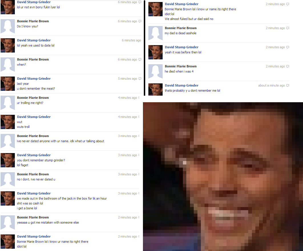 >>728967172somebody post the facebook thing where a girl posts "hvae you even heard of the feeling man" and another girl apologizes