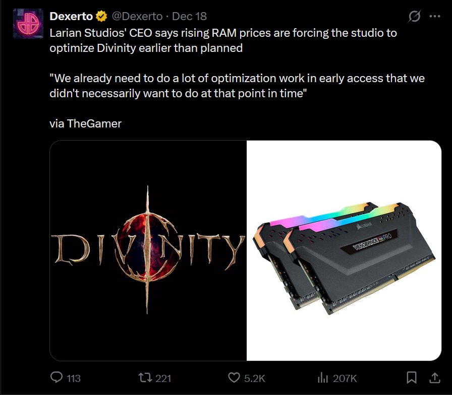 huh how strange I wonder what could be causing the rise in RAM prices, Larian?