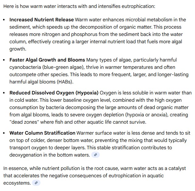 >water doesn't disappear!except it does, warm water will get eutrophised super quickly and get consumed into biomass, enjoy your algae swampssee, your AI overlord agrees too, I'll keep proomting it just to make amerimutt lives more miserable lol