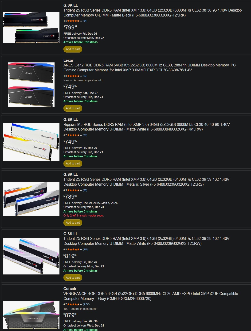 >>728942935Got my 32gb ram a decade or so ago. Upgrading my CPU and GPU right now before the new price hike