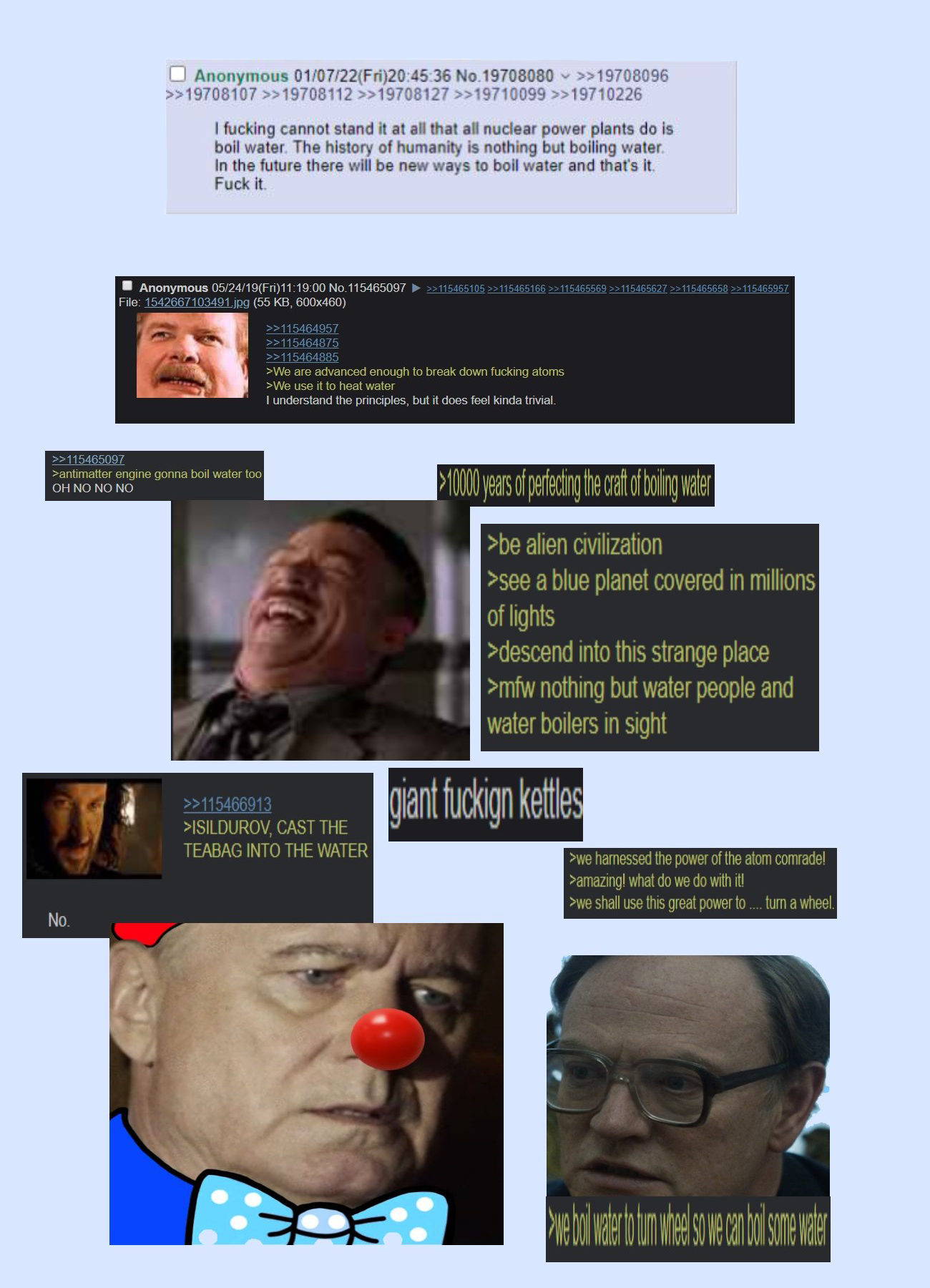 >>728943657Bunch of retards. This is the real reason.We peaked at the steam engine. All electricity production can be generalized as boiling water. Water == electricity.