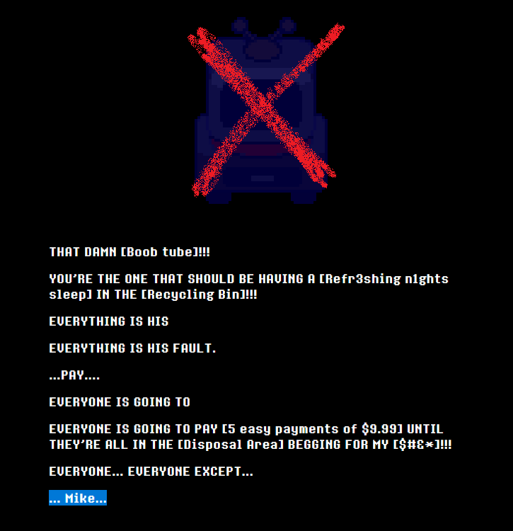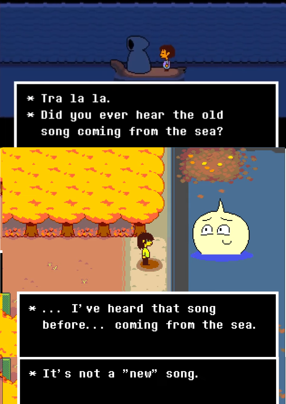 >>728992108the first one is just a short wacky game about falling underground into a world of monsters and trying to get back home, there's alot of subtle lore sprinkled throughout that suggests a deeper and perhaps more sinister storythe second game can still be wacky but feels less like a shitpost, it's about a human in a town of monsters discovering portals to alternate realities, it's alot more mysterious we really don't know everything yet, but it also has hidden undertones that seem to connect with the aforementioned sinister aspects of the first game