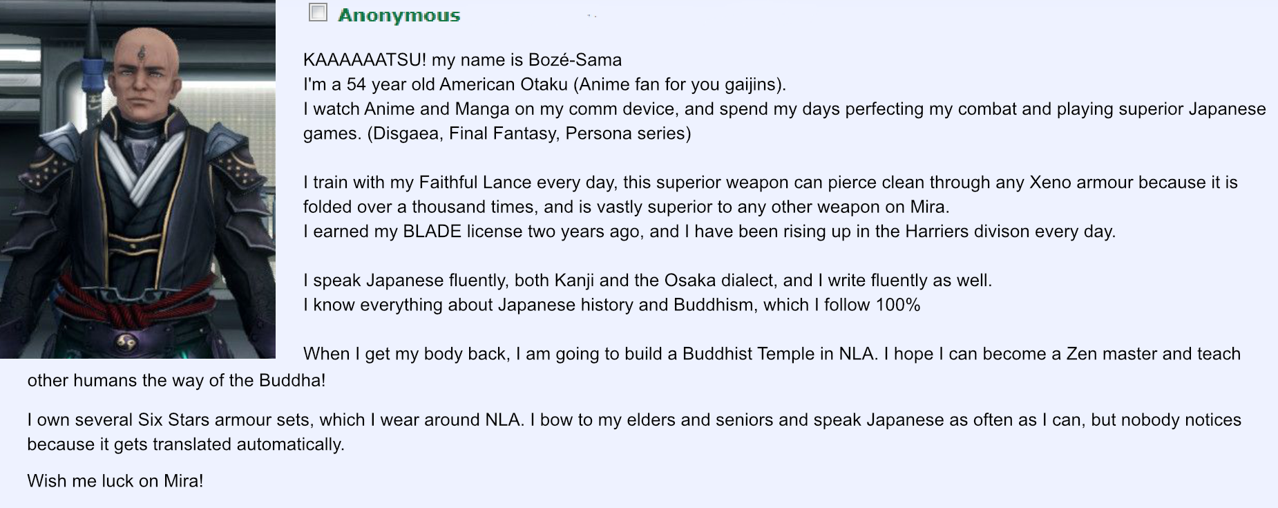 Shame the character creator is so fucking awful.