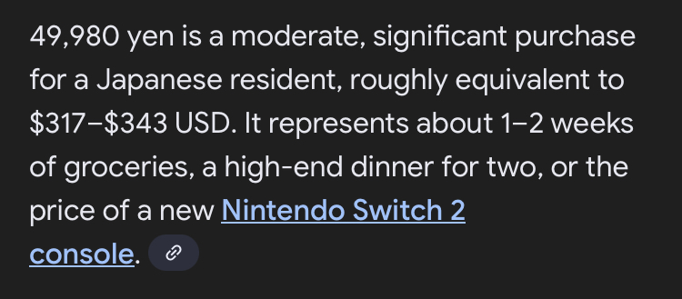 It's obviously not a failure--it's like, what, the fastest selling console to date, right? Because the whole launch thru holiday strategy revolved around them being available? Anyway my kids are getting one on Christmas morning and I'm pretty excited to see Bananza and MK World (even though I am kind of leery of World for some reason) but I am already tired of how conservative they have been with it. They pushed the launch of the console back an entire calendar year and in the first holiday there are two really exciting games worth owning on it? I don't mean to disregard Prime 4 and Air Riders--in fact I think Air Riders looks really neat, but god damn if they aren't really taking things slowly. I thought for sure that the whole idea with the delay was to blow out the first year. Instead the momentum of the Switch 2 is predicated on what will certainly come later and the fact that the PS5 is fucking stale and will probably never have games and Xbox is dead. The biggest reason to own the Switch 2 is the promise of unannounced games to come. Doesn't feel awesome.