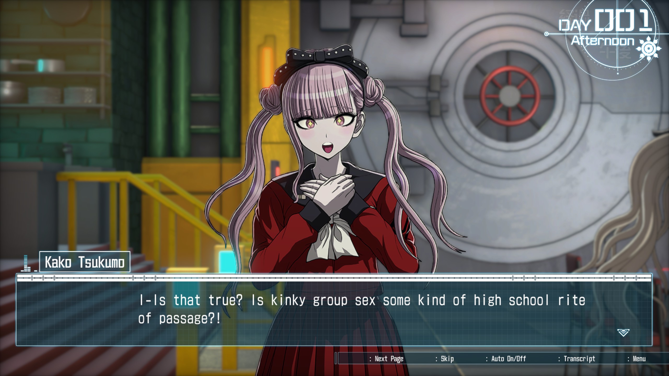 Does [CHARACTER] cause a gigantic disaster that gets everyone killed?>Takumi: Many times>Eito: Many times>Darumi: Zombie timeline>Gaku: Zombie timeline>Ima: Zombie timeline>Takemaru: Repeatedly mistakes you for being a murderer, spy, or invader, and locks you up, which results in everyone dying>Nozomi: Gets mind controlled by a bug and kills everyone>Kako: Gets mind controlled by a bug and kills everyone>Shouma: Hides a mind control bug because he wants a pet>Hiruko: Tosses Kako-G into another timeline, which gets them killed multiple times>Yugamu: Pretends to be a serial killer, acting as cover for the actual serial killer>Kurara: Goes all-in on the conspiracy route, which gets everyone killed>Eva: Kills everyone in the SF timeline where you destroy the planet>Tsubasa: Doesn't go through with the suicide bomb, getting everyone captured and later killed by Vexh'ness>Moko: Mistakes you for a murderer and kills you>Shion: Blocks the escape pod from leaving because he hates Takumi in the KG ending and gets all of the survivors killedKyoshika is literally the only character who never does anything stupid enough to get everyone killed. Kyoshika is the smartest character in the game.
