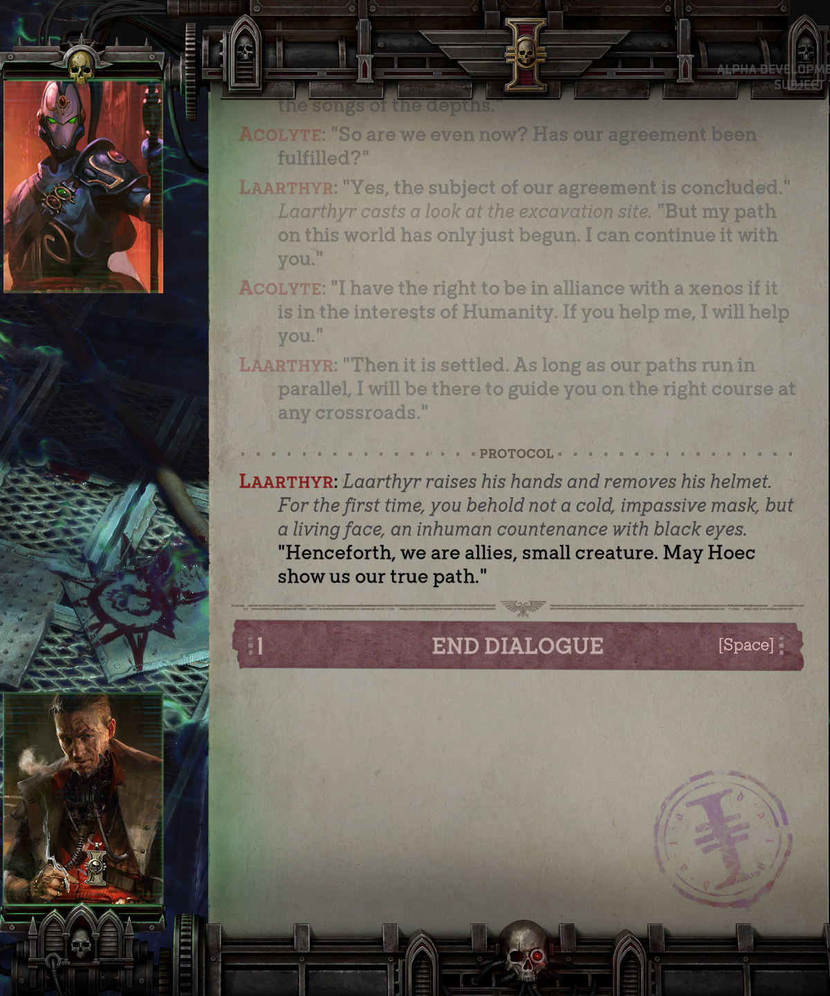 So do you become an inquisitor in the alpha already or did Owlcat show some restraint and you're an acolyte for longer than the prologue?