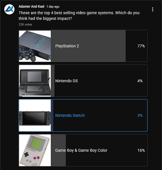 >>729002160Because the vast, vast majority of PS2 players were normies, anon. They never really cared that much about videogames and just asked for the most popular console (or the one with the ball and gun games) for christmas, and then moved on with their lives and forgot about videogamesNintendo kids, on the other hand, tended to stay interested in the hobby, which is why they're the ones making videos nowadays
