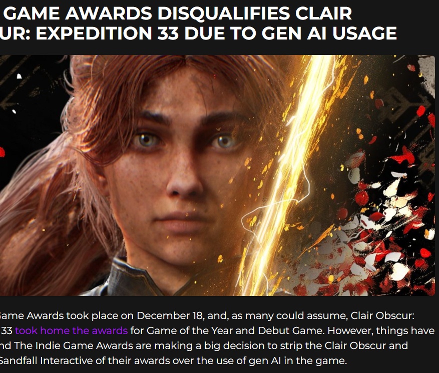 Using AI is bad so I lolBut game awards are for faggots so this means nothing.I guess it's a moot point.