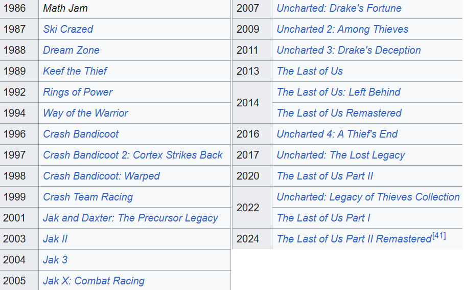 >work at Naughty dog>collegues are landwhales soiboys, megalomanians tweakers and juice>10PM have mandatory unpaid overtime>Have to animate bald girlboss teabaging only white likable protagonist> Then model jewish memorabilia and make it undestroyable