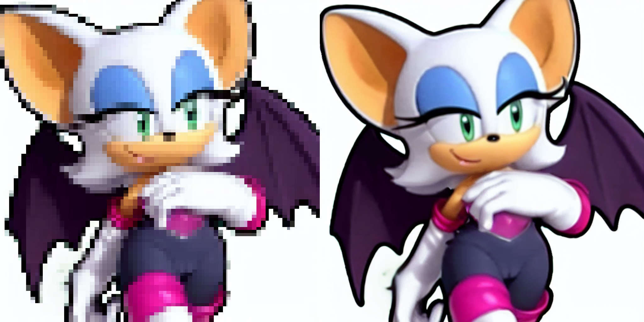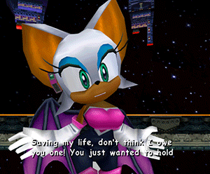>>729045818It literally doesn't The last game she acted like a femme was in Heroes, maybe 06 if you're pushing it. That was 19 fucking years ago. Every adaption of Rouge since then has been "Hi Sonic, I'm friendly!"