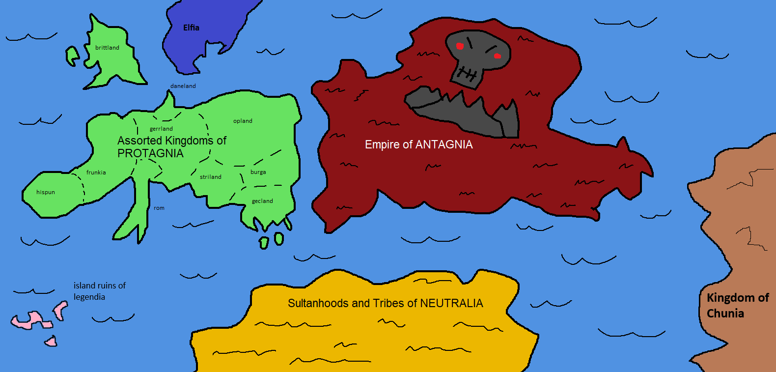 >medieval europe fantasy setting>bad evil empire from the east>distant oriental lands of dragons and jade>here be elves>mysterious deserts of legends and magic>old ruins of a forgotten ancient and very important kingdomit's gaming time