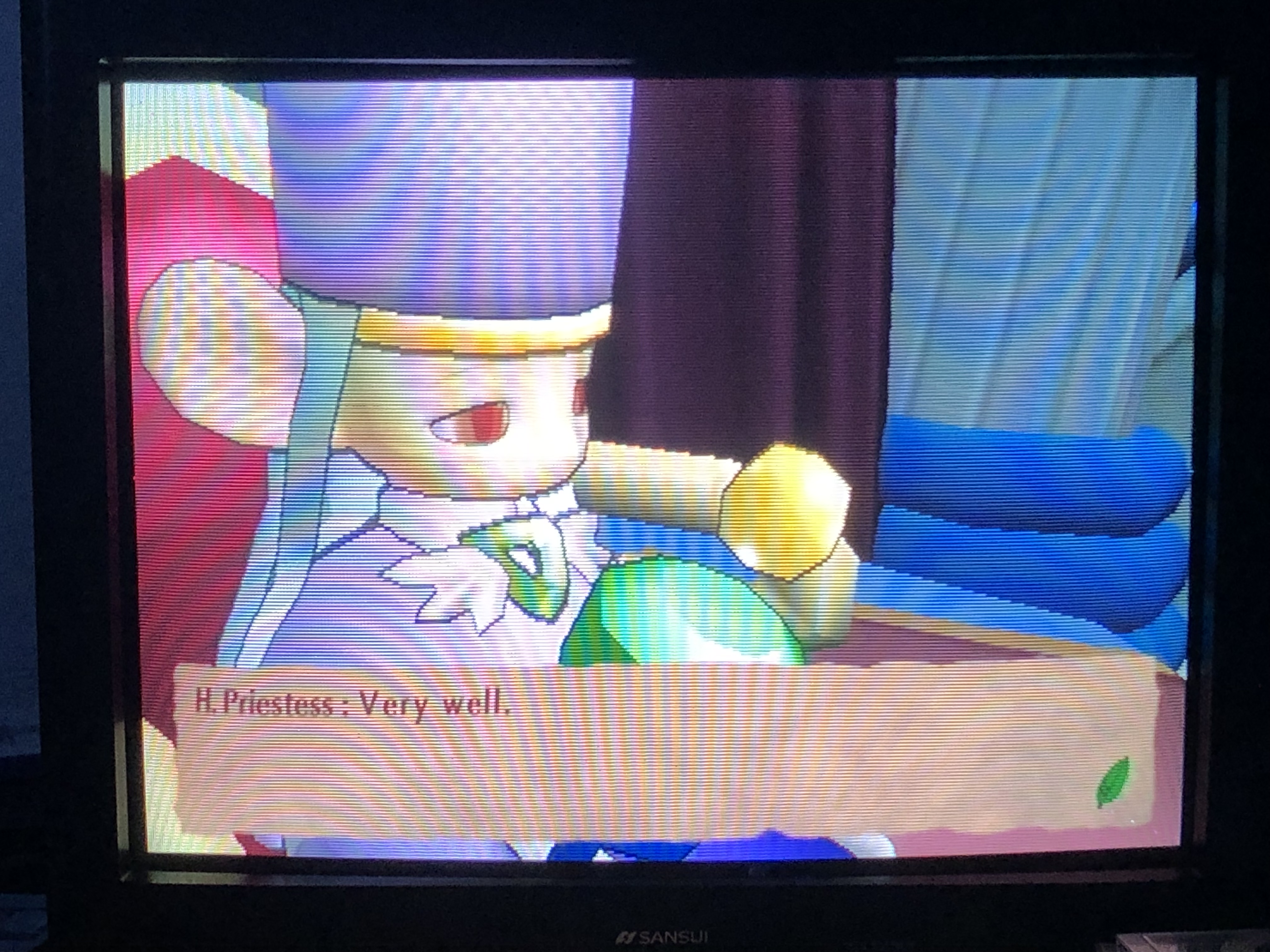 I think when I photograph interlaced video, only half the lines appear in the photo. Like if you zoom in on this pic you see “scanlines”, but those aren’t visible with the naked eye on this game. Klonoa 1 was different since that’s a 240p game, you could see scanlines with the naked eye. Just an observation that I’ve noticed since I post a lot of zoomed in screenshots and they have a scanline look which isn’t how it actually looks in person