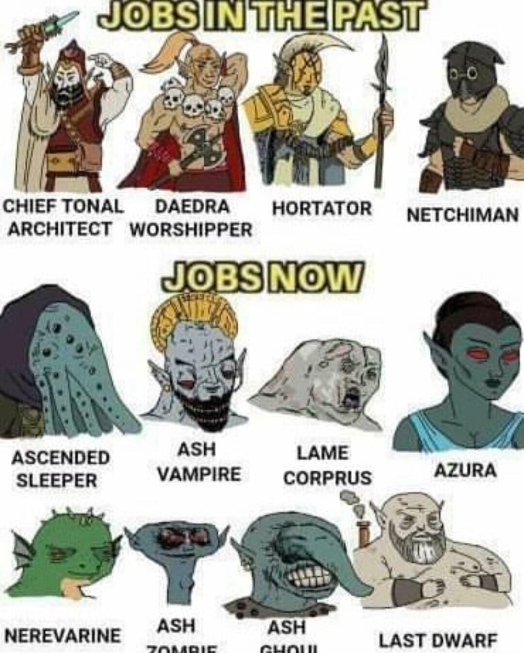 I miss having the local culture and religion actually be relevant to the main plot. Dagoth Ur is literally the local devil. Everyone in the story is aware of the stakes of what's going on and has some perspective on it. The real history of the region and the beliefs of the people feed into each other. You can meet historical figures and get their take on things because this stuff happened in living memory. You could beat the game knowing nothing more than Dagoth Ur is some wizard in a volcano you need to kill, but if you read up independently you can get more out of the plot.In Oblivion it really doesn't matter where you are in Tamriel for the Oblivion Crisis its the same shit. Mankar Camoran's Commentaries are the only interesting thing to read and even that doesn't really impact your understanding of the plot. It's just nice to have a villain actually articulate why they worship the god of evil murder in a convincing way (which is a shitty part of tons of fantasy cults) Skyrim felt disappointing because it almost tried. Alduin is a local deity but the events happened so long ago that it's all forgotten and you need time travel to learn what happened, and most of Skyrim's religion has nothing to do with the old pantheon anymore. There was also the local civil war conflict but that was also half-assed, there was no actual conflict between the local and Imperial culture and it was detached from the main plot. The sole interesting idea that they even tried to develop was the idea that the deaths from the Civil War were actively making Alduin stronger and you needed to work towards a truce.
