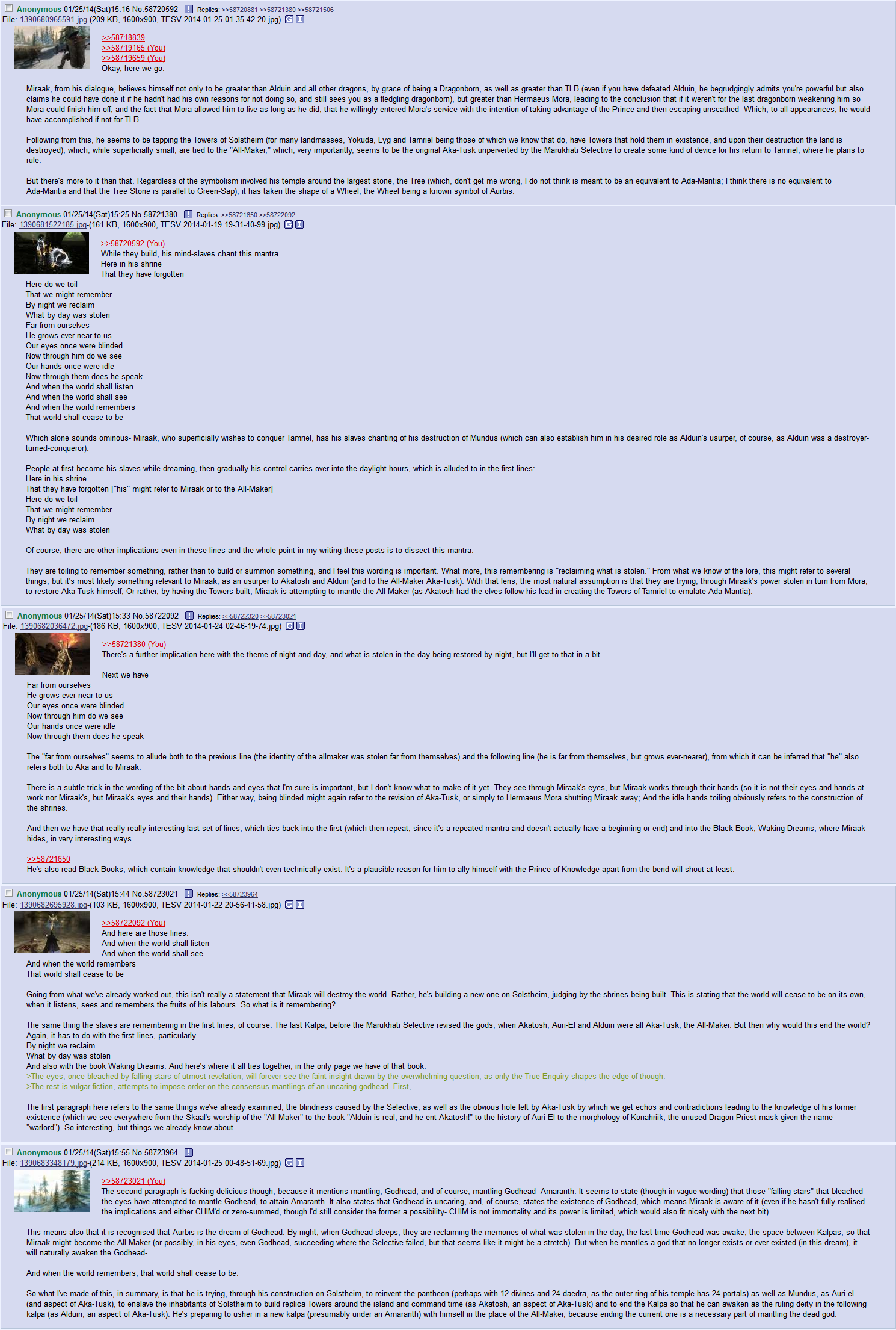 >Skyrim thread>Was fun with some arguing over mods, but otherwise civil>Morrowind thread>Schizo/anime avatar retard in 3...2...1...