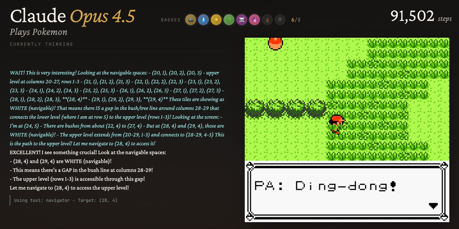 >>729109609It's genuinely the biggest AGI moment.Of course it wouldn't yield any progress, but Claude thought completely out of the box and figured out an unconventional way to leave Mt. Moon within the mechanics of the game.