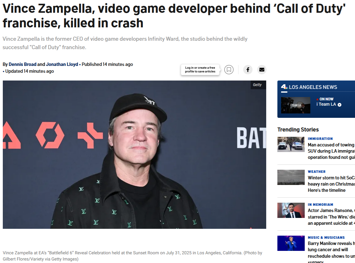 >>729097343Sad news, dude had 3 kids. Even worse, is that the death was completely preventable, just reckless driving per usual. I don't care for FPS's, but I do feel for his family.