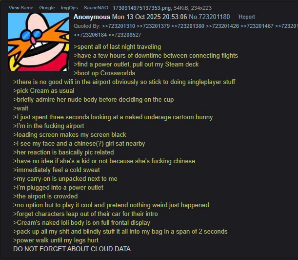 >>729124776Very funny but cloud data does not include mods, only saves. He would need to install the linux version of the modloader, good greentext though.
