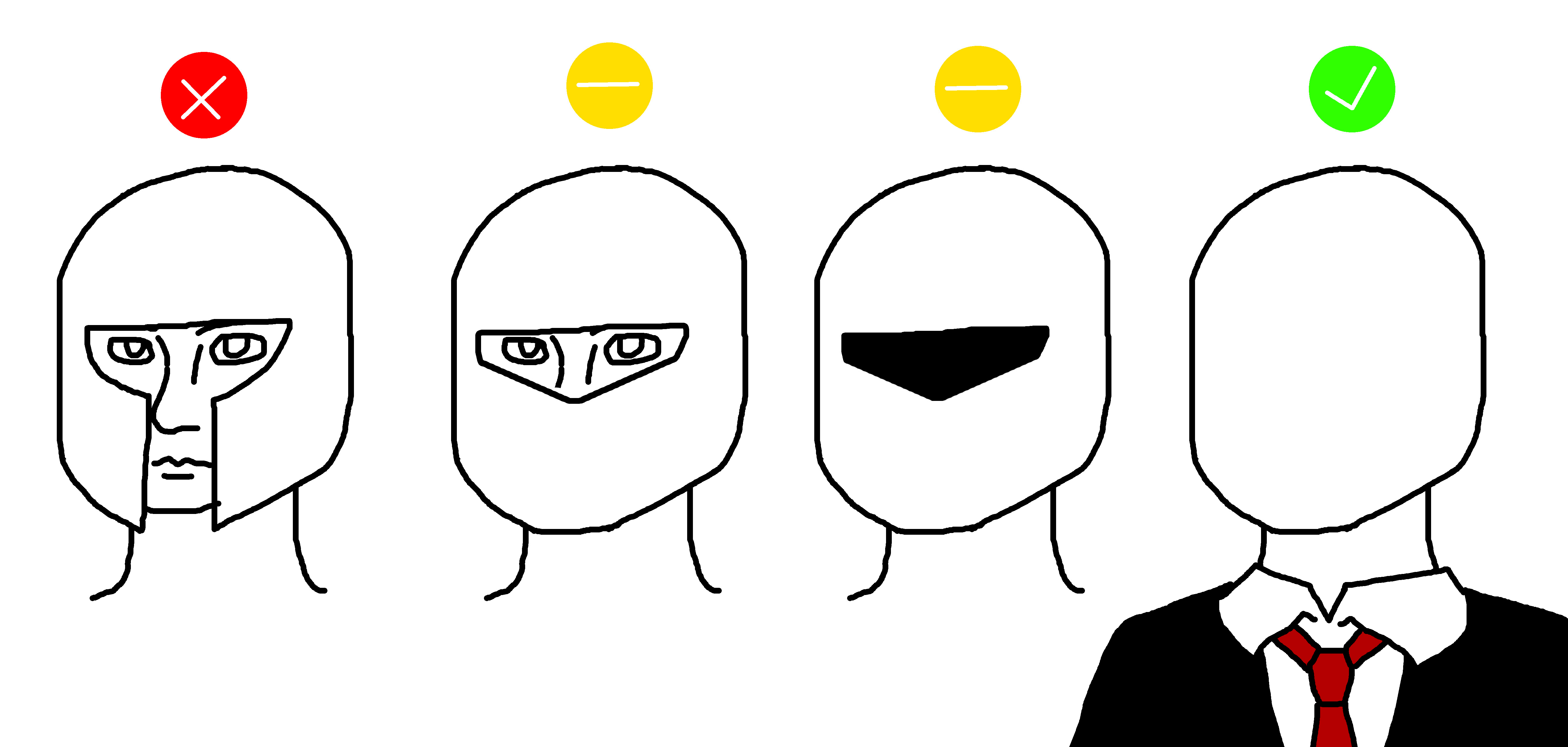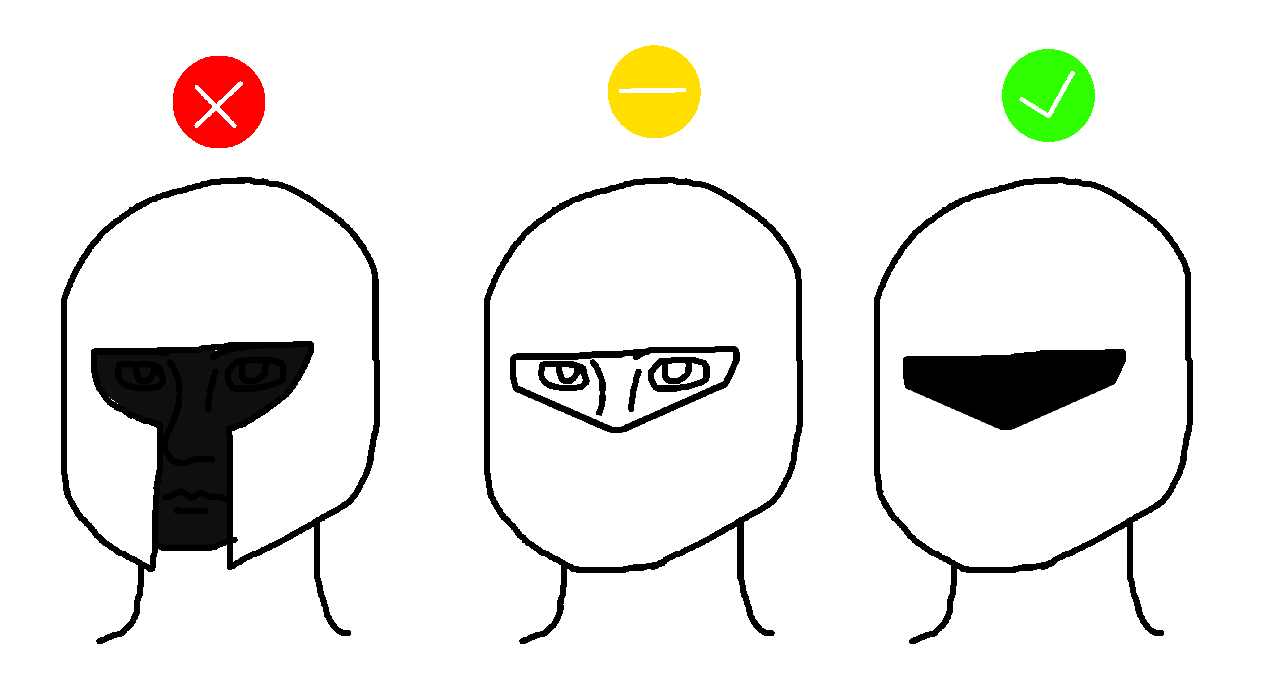 >>729112563Faces look weird without hair and ears. If you are covering those features just go all the way and give them a full face mask.