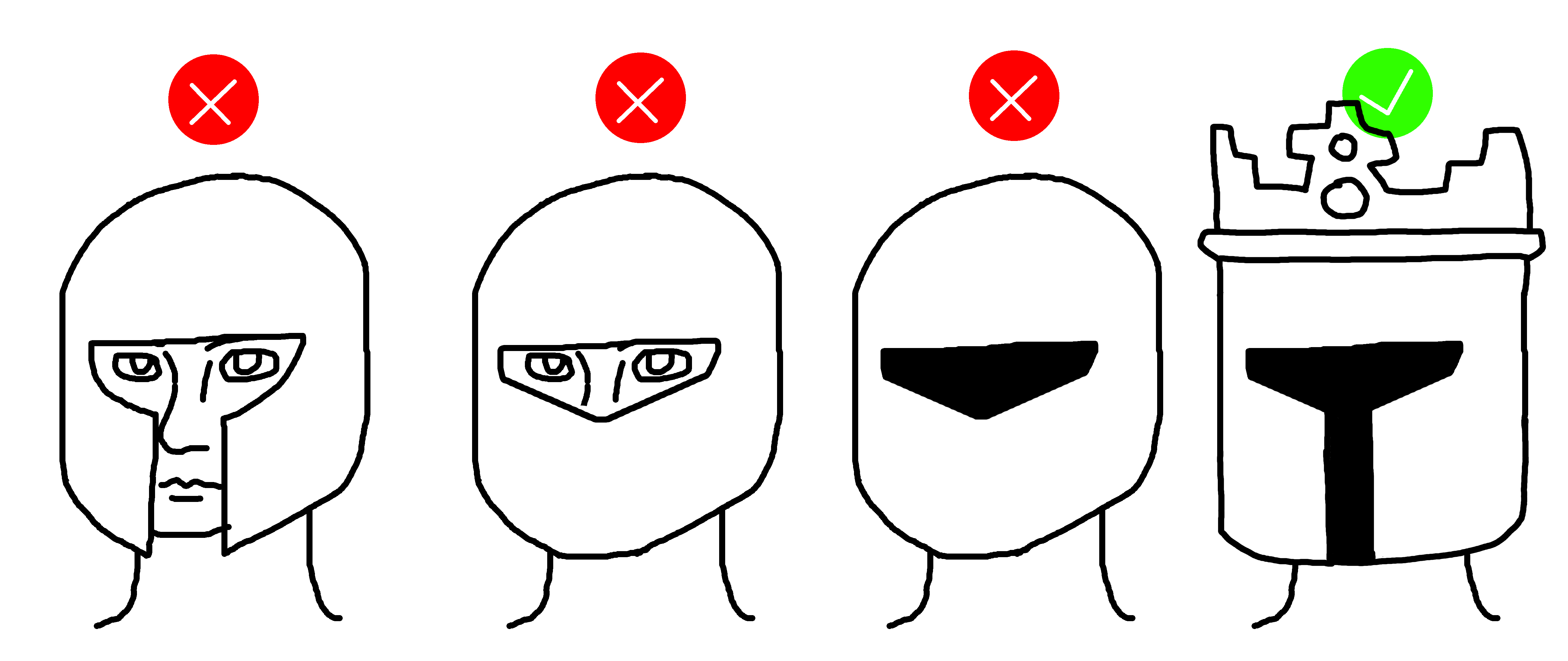 >>729112563Depending on the circumstances, left can be fine. If you're going to be pretty mobile or wearing that helmet for prolonged periods of time having your mouth and nose covered like on the right or middle can make breathing uncomfortable.