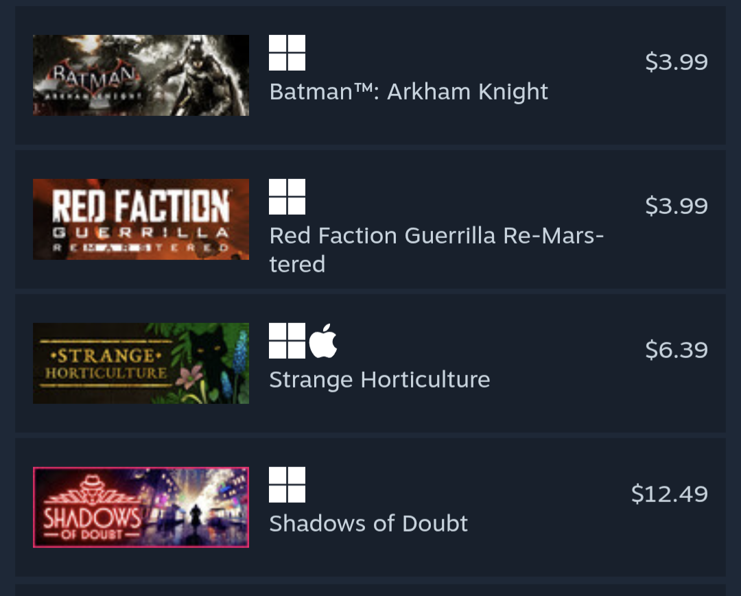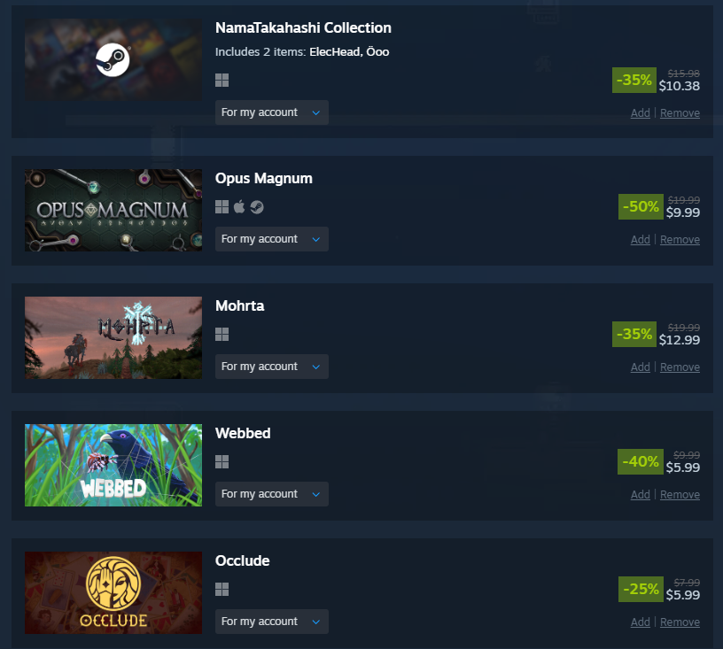 I got most of the games I wanted via trades on Lestrades and bundles, this is what I couldn't get that way.