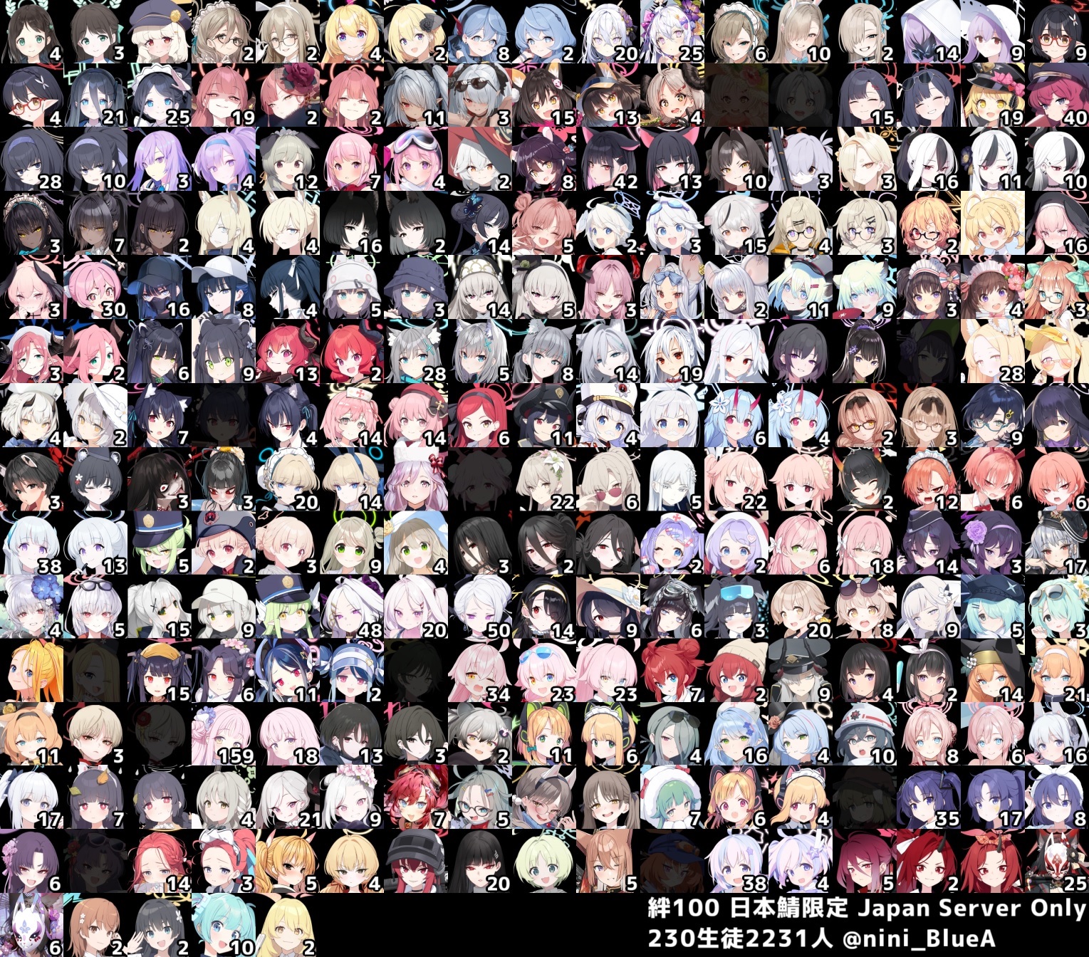 330 total pulls, 100 of those were free. Thanks Arona.Now I can use the 42k pyros I have left on Kanoe.