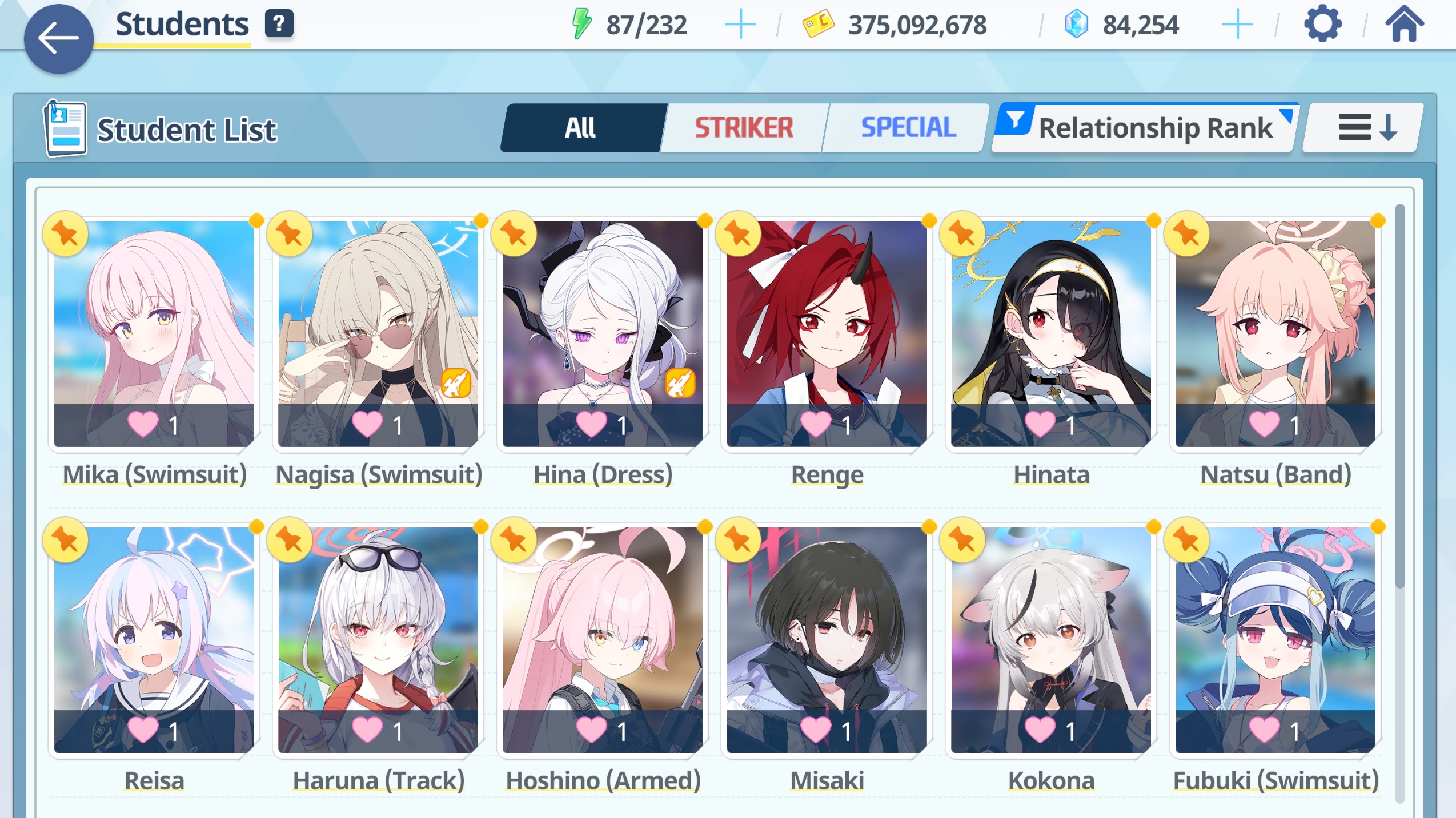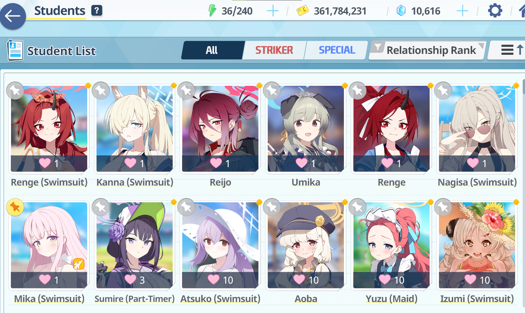 >>729126173Already maxed out Mika. 240 for everyone.
