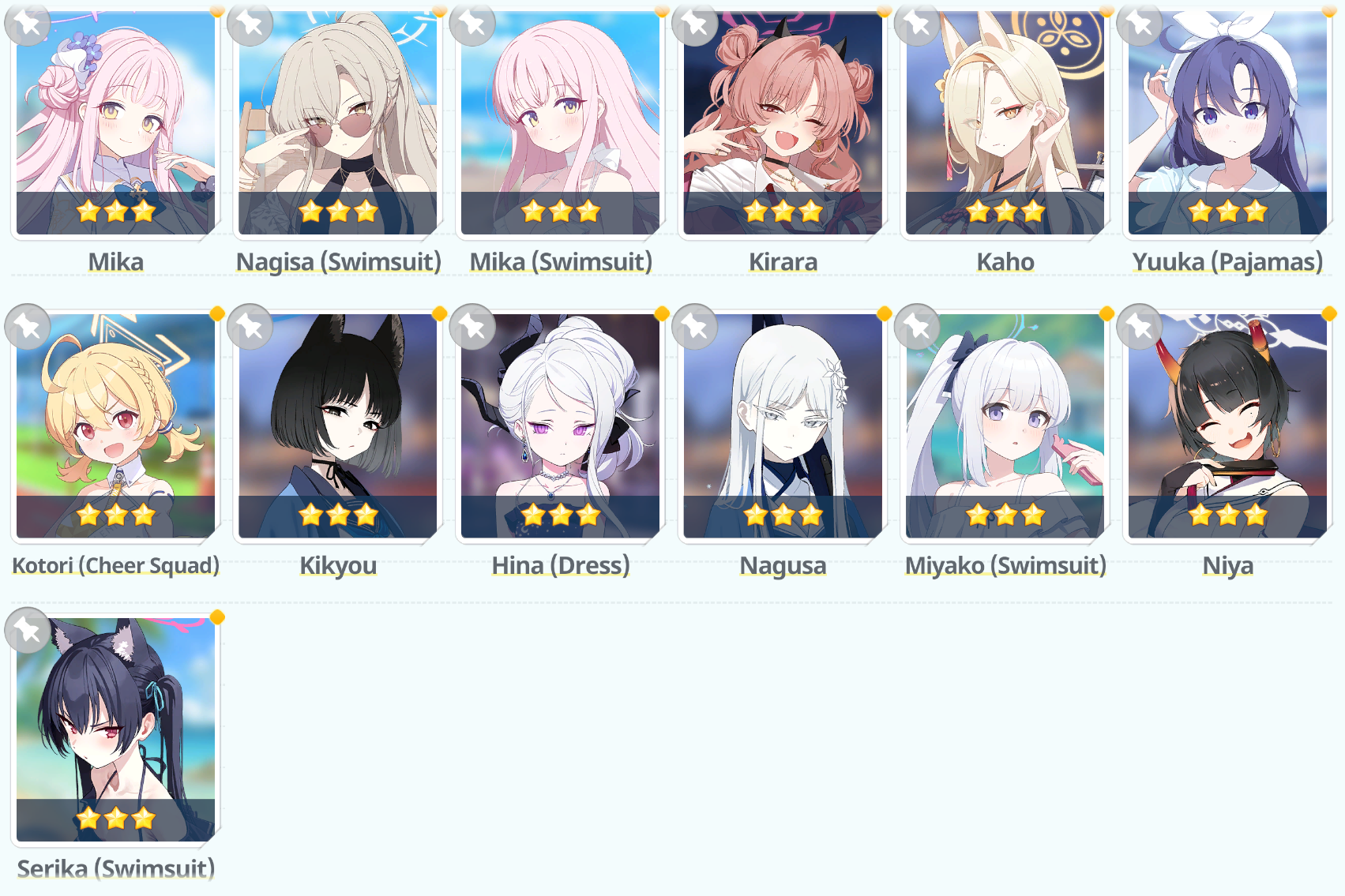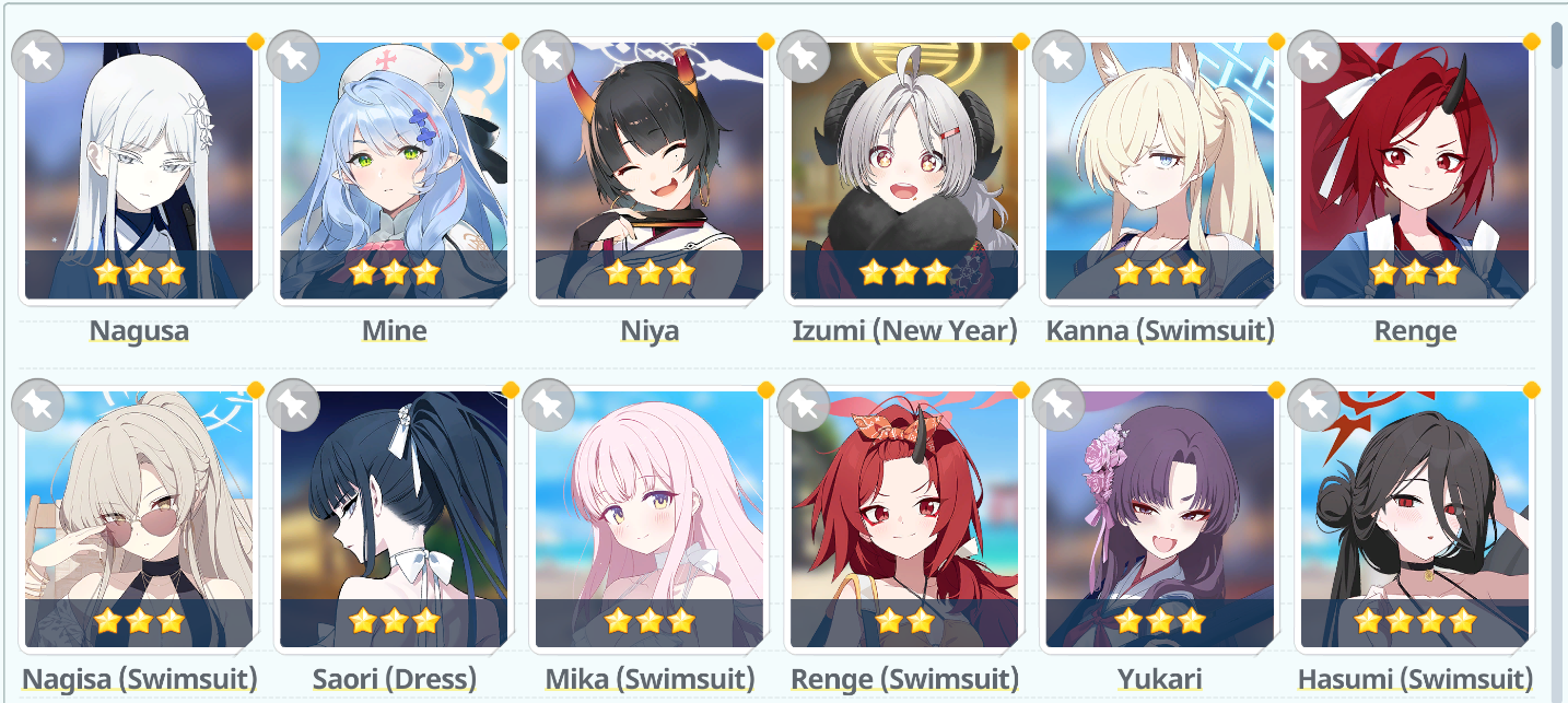 >Mika (Prime)>Shiroko Terror>Wakamo>Niya>KisakiI'm finally getting some core fucking cast assembled.