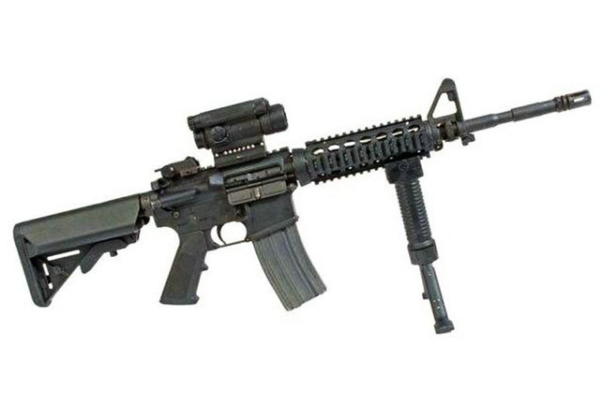 >>729147920two barrelsscope too highhand guard as long as magazine hand guard too close to magazine so theres no room for triggeralso gun still has front sight attached with the optic, kinda retarded