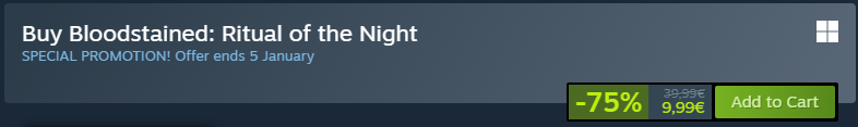 >>729163680it's glitched, search for bloodstained and you can pick it up from it's own store page, me personally im skipping this weebshit sidescroller