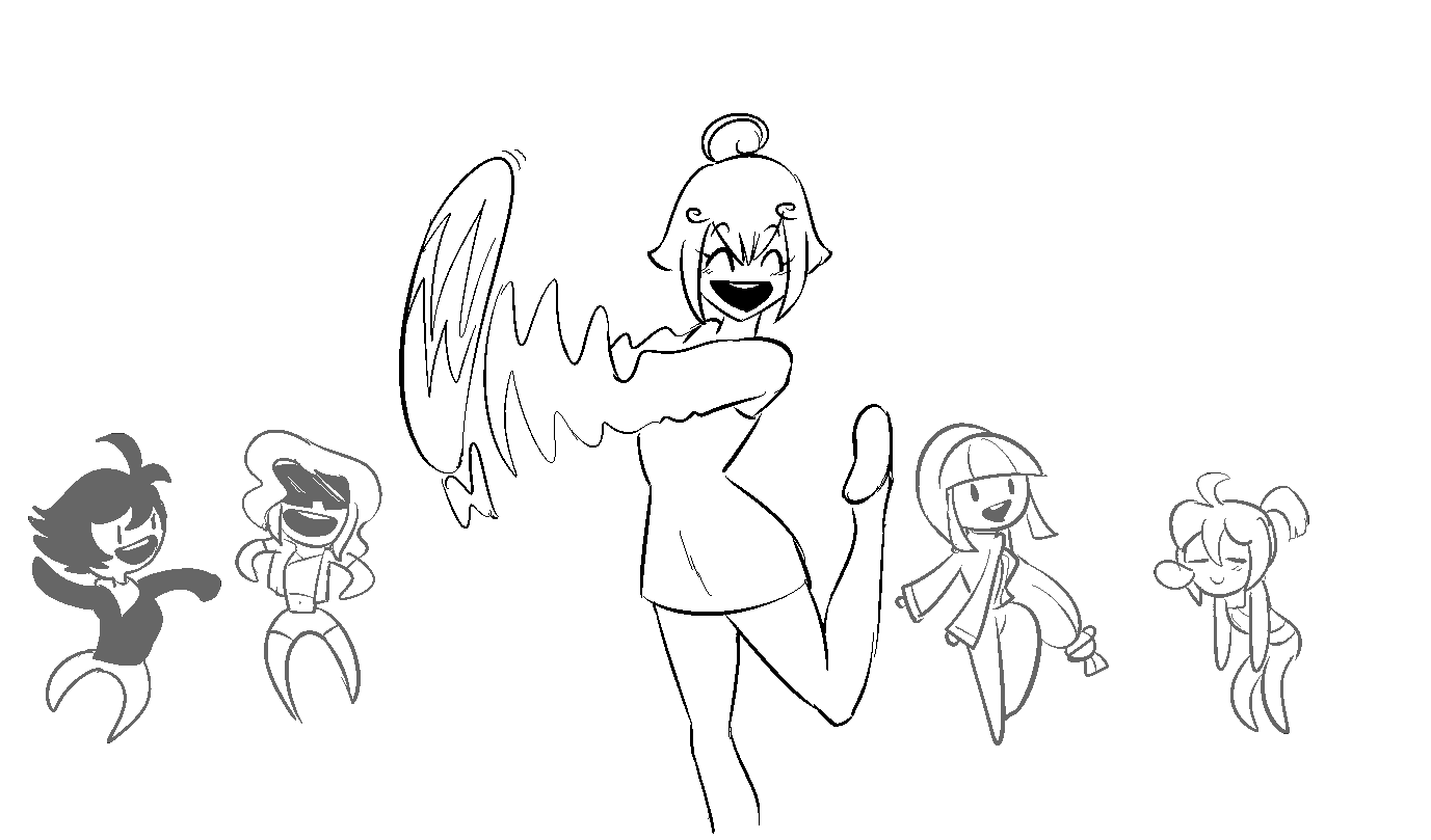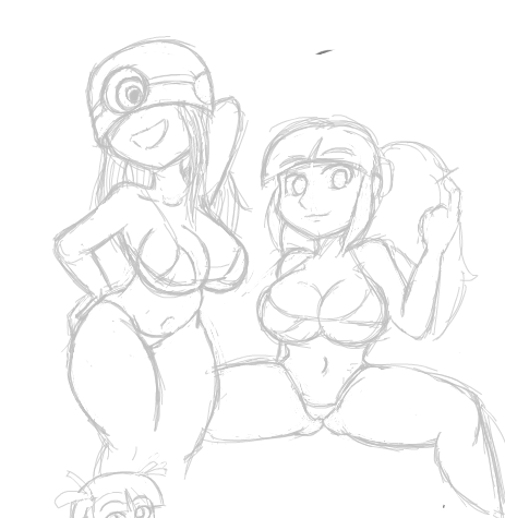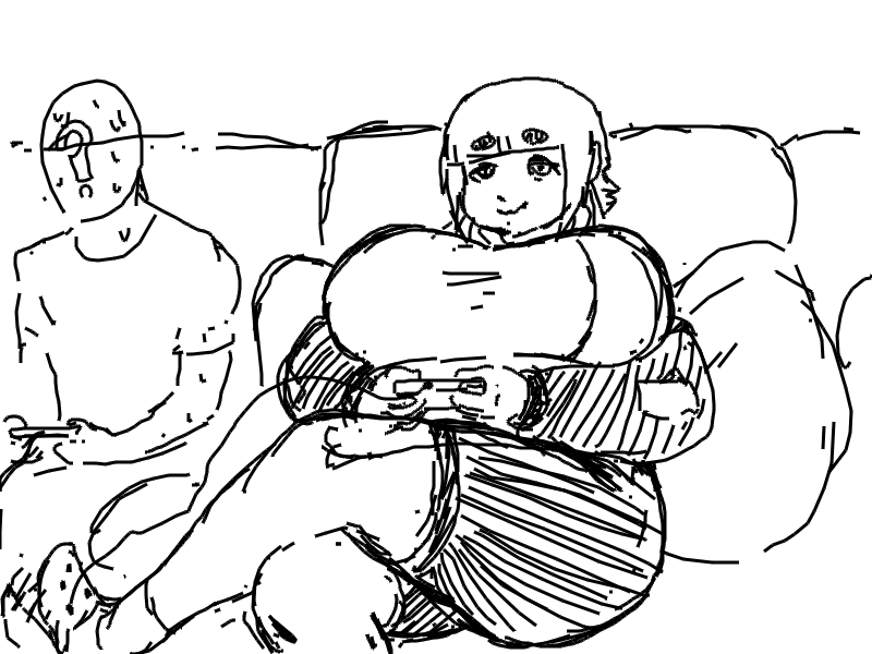 could also have other girls be hugging her, either resting their heads on her belly or boobs