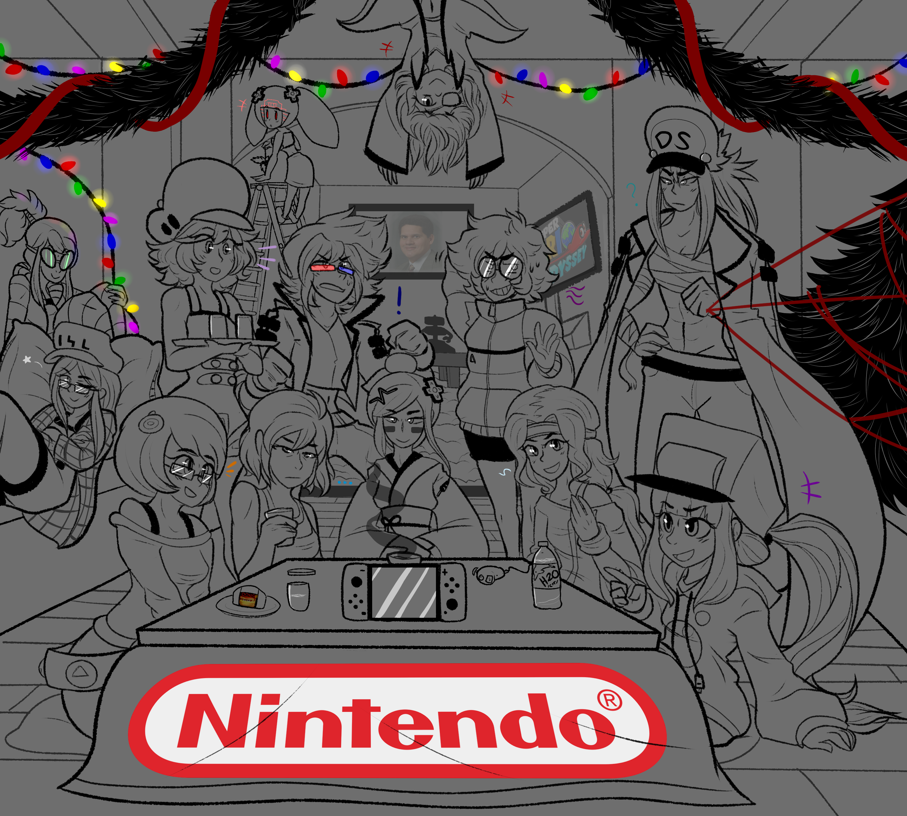 NES wearing a Christmas sweater