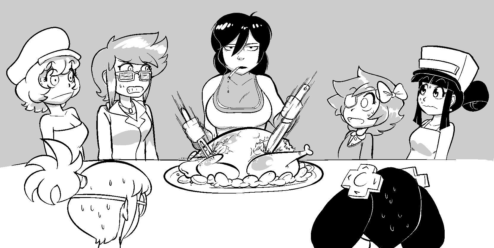 hogging the burgers for herself