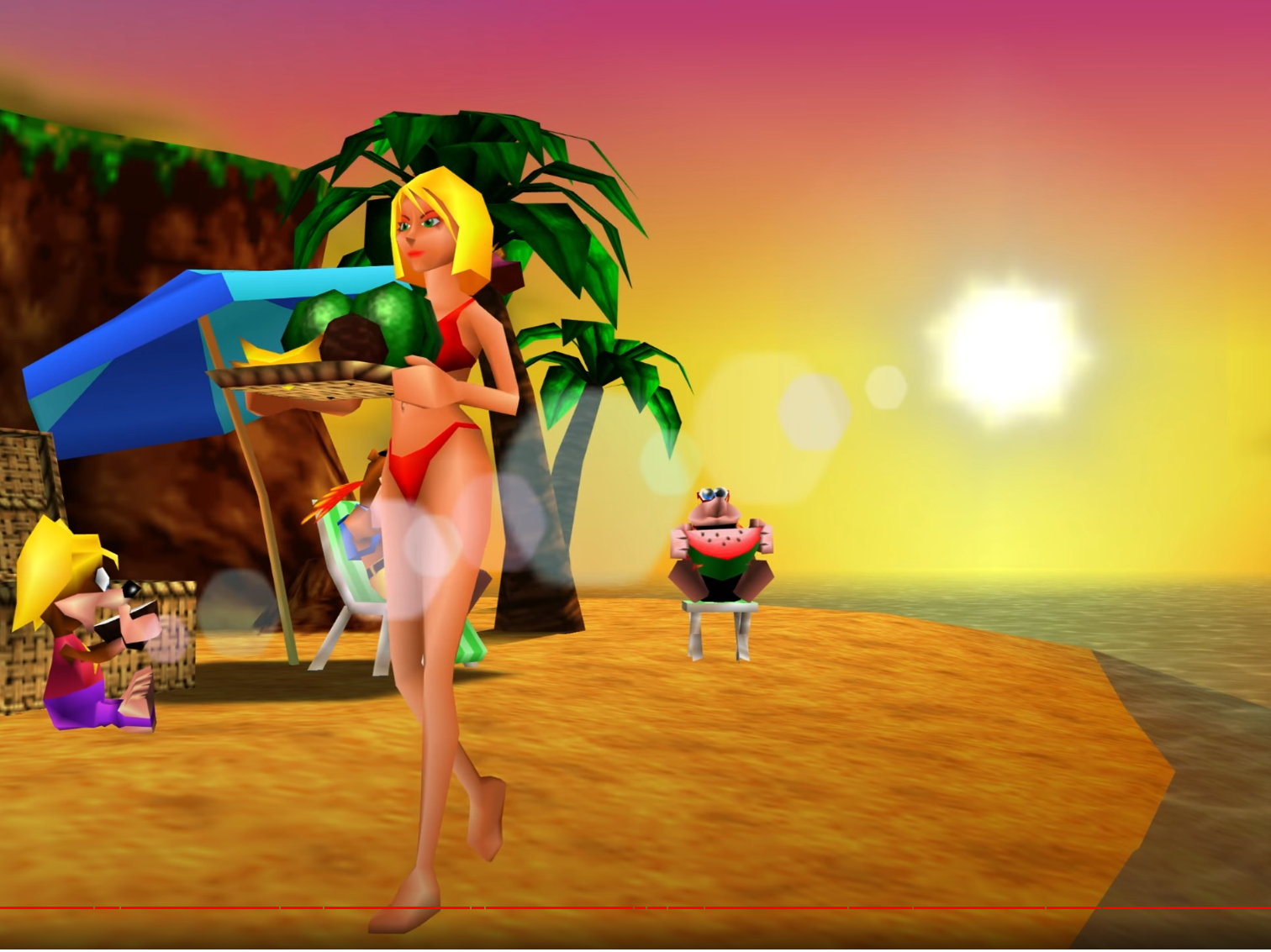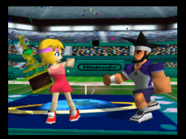 >>729165830I love the hand drawn anime expressions mixed with chunky polygonal limbs and the N64 filtered shading. Mario Tennis 64 was very charming.