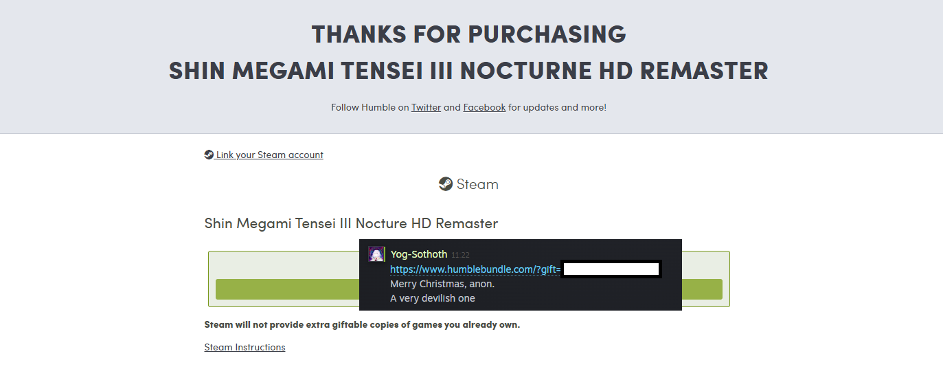 Would be happy with any game, happy holidays anons.https://steamcommunity.com/id/PKMNTrainer/