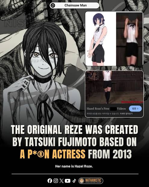 >>729203713>personality and even her nationalityHazel Roze isn't russian and in the video she just kinda walks around in circles. So no on those two>her designRoze is blonde with glasses and frankly looks nothing like Reze. The clothes themselves are basically the exact same, but they also aren't entirely unique. I think some Kpop star also wore the same thing to a show pre-Reze. But it's possible the clothes come from this random porn actress, yeah.