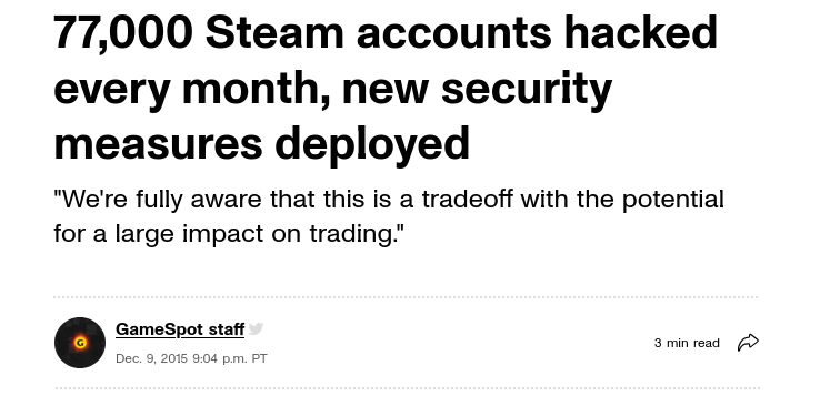 >>729196745you have to be pretty retarded to get your account stolenyou can't even trade without the authenticator and who is going to steal an account that doesn't trade, eg has no real value other than some games in it.