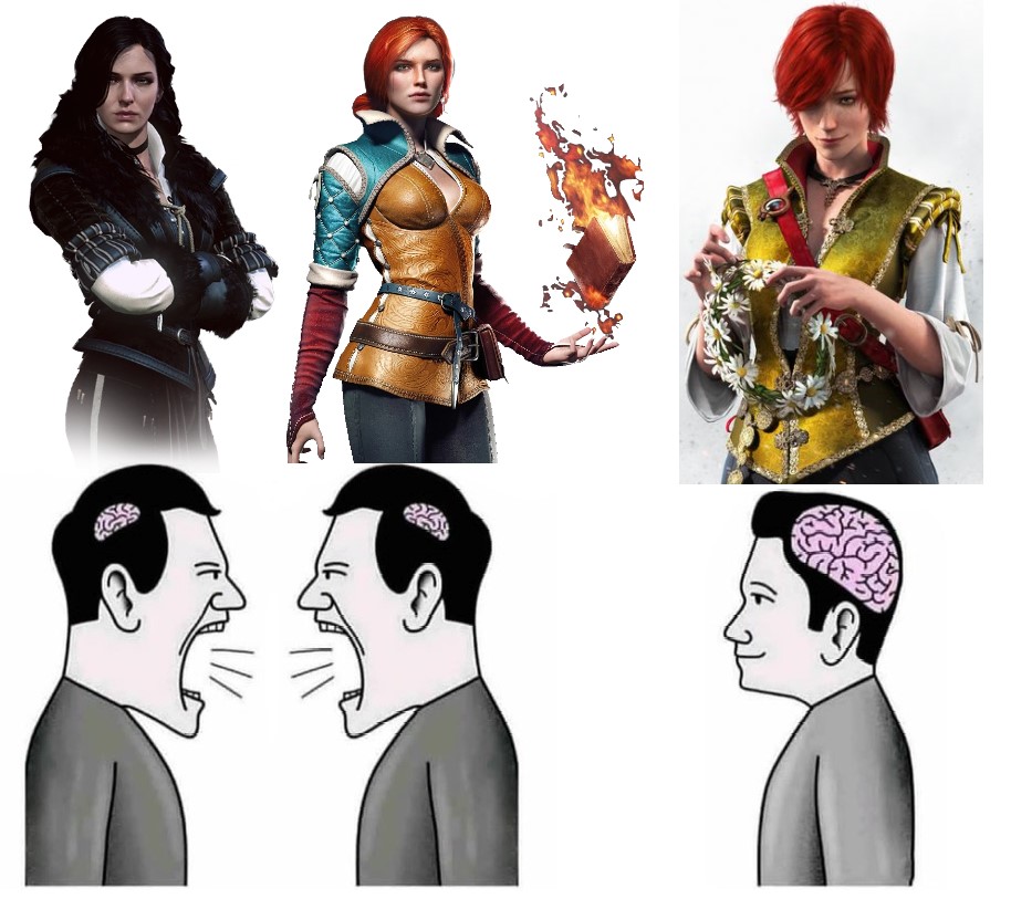 >>729211824Well when I've chosen a kitten I went with the fatter one because by my logic I'm getting mor of a cat.Same logic here makes me go with Triss because she's more of a woman.
