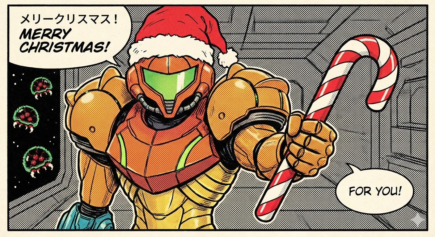 My wife Samus on this cozy Christmas Eve.