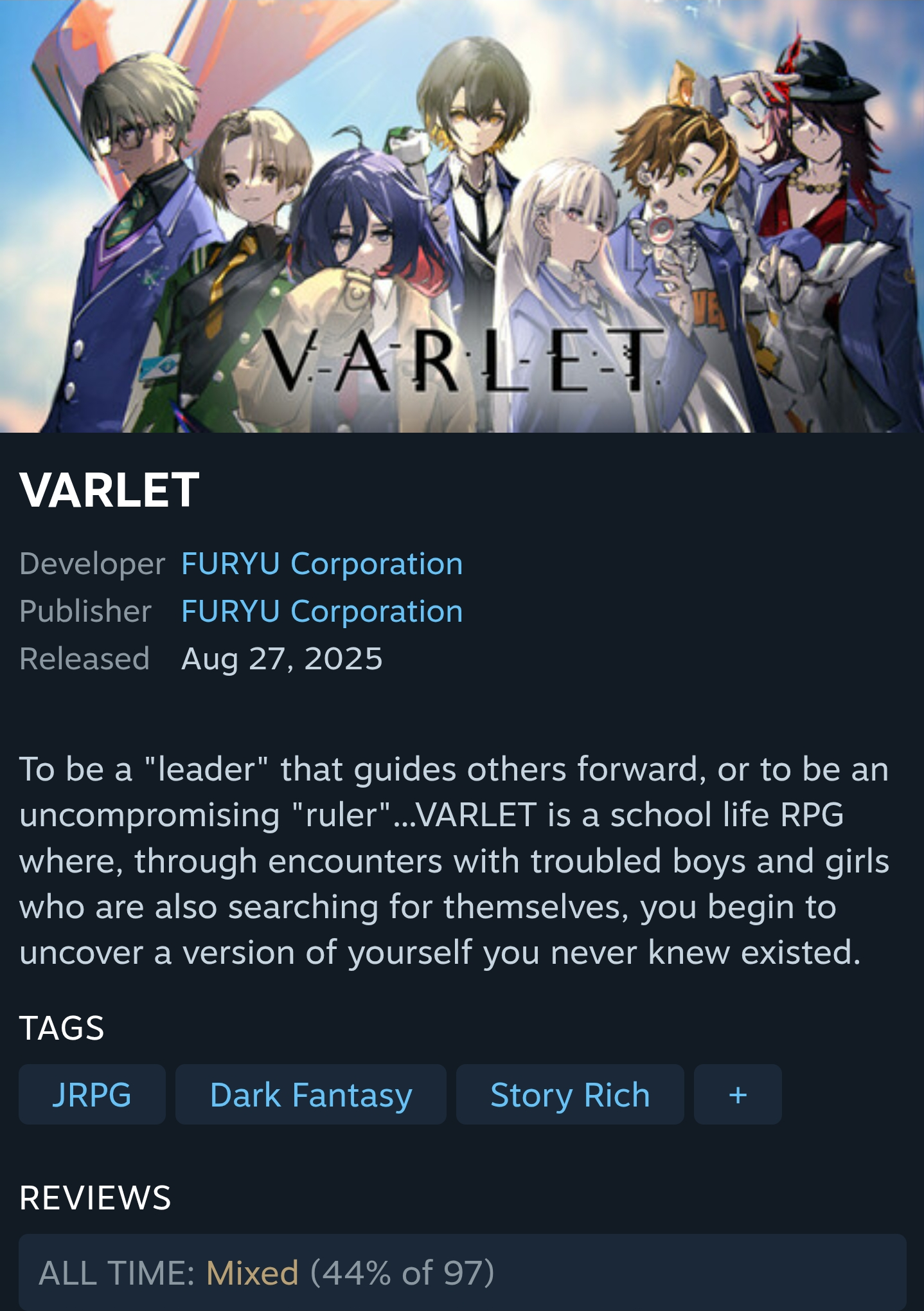 >>729226287Look good but also a bit too expensive for a RPGMaker game.I'll wait for at least a 50% discount