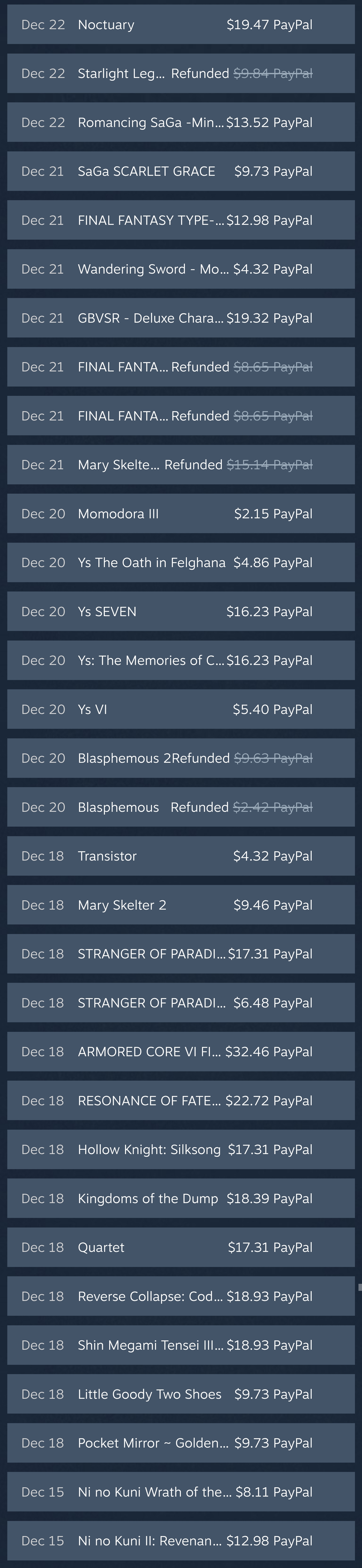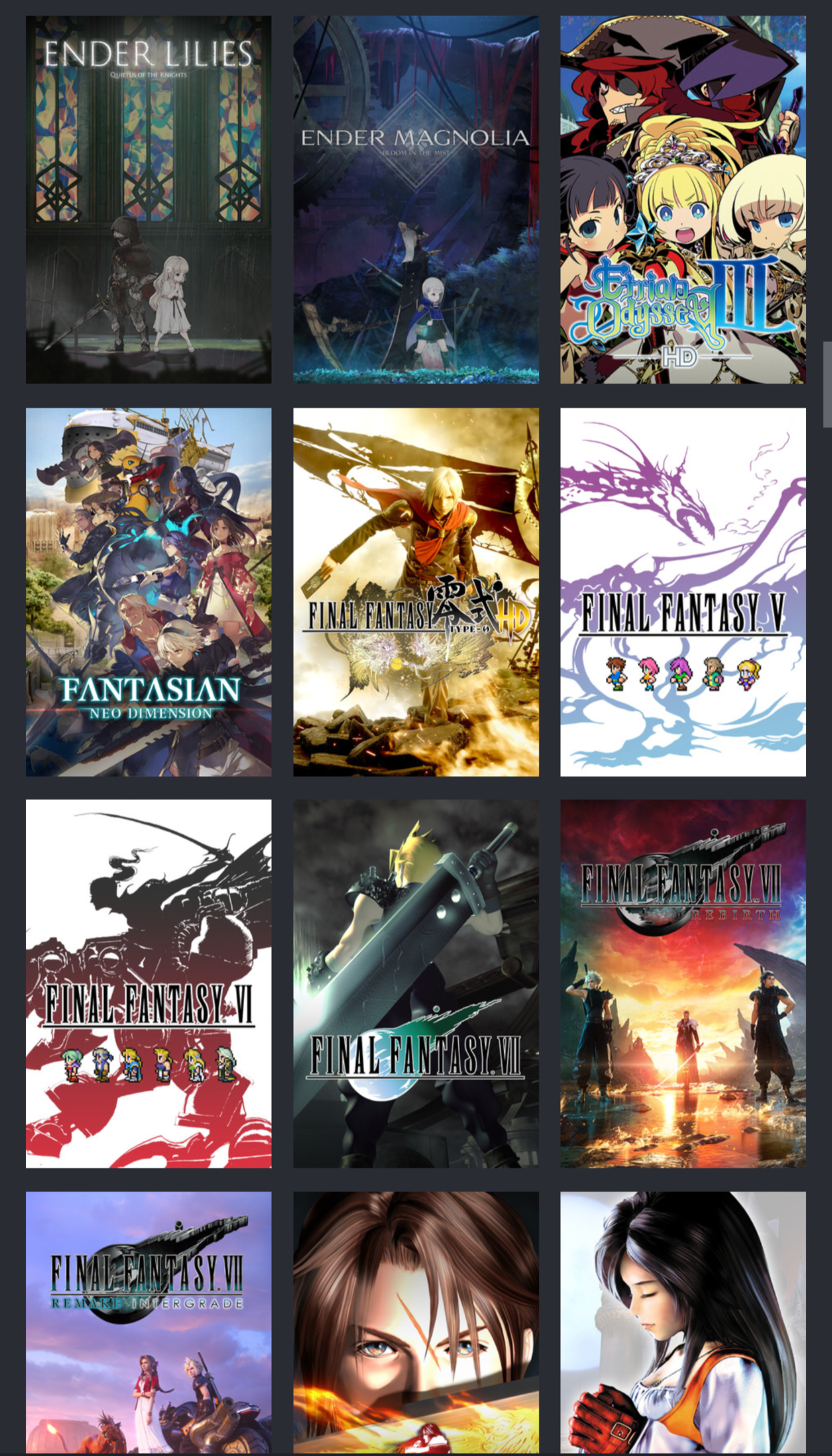 >>729220781I was gifted DQ11 on steam. before winter sale I picked up Graces f