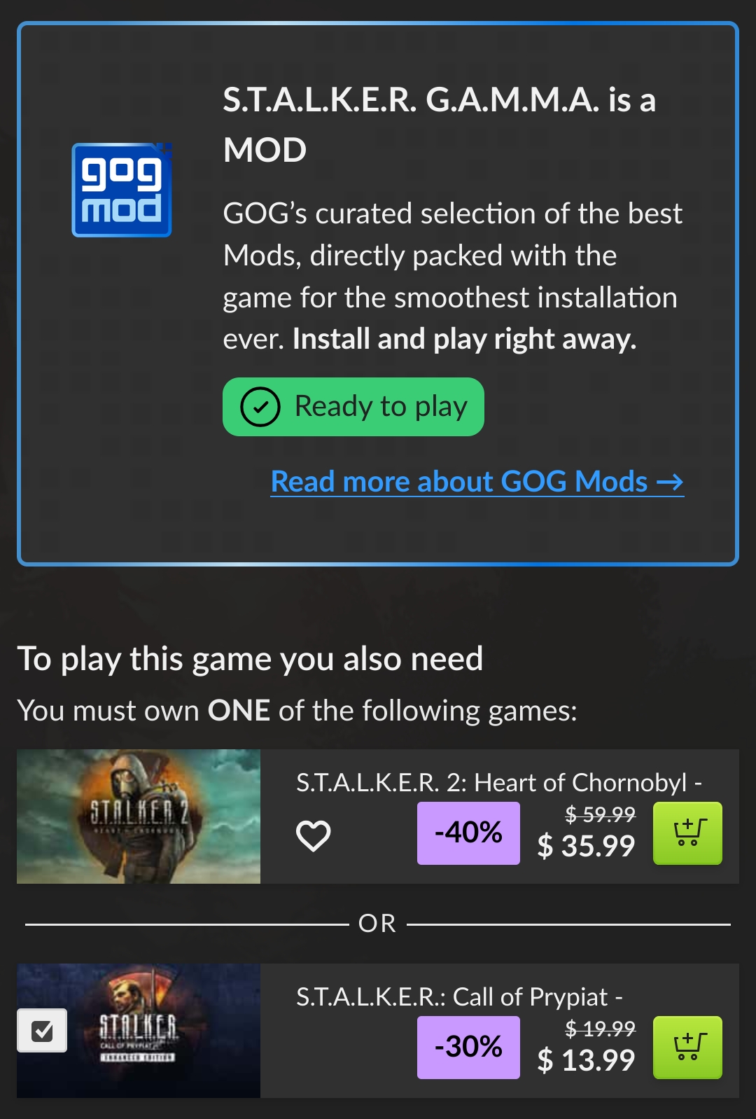 Oh cool Stalker GAMMA is on GOG, let's install this and give it a try>Taking longer than expected to download and install>Look inside>~120GB size on diskHuh