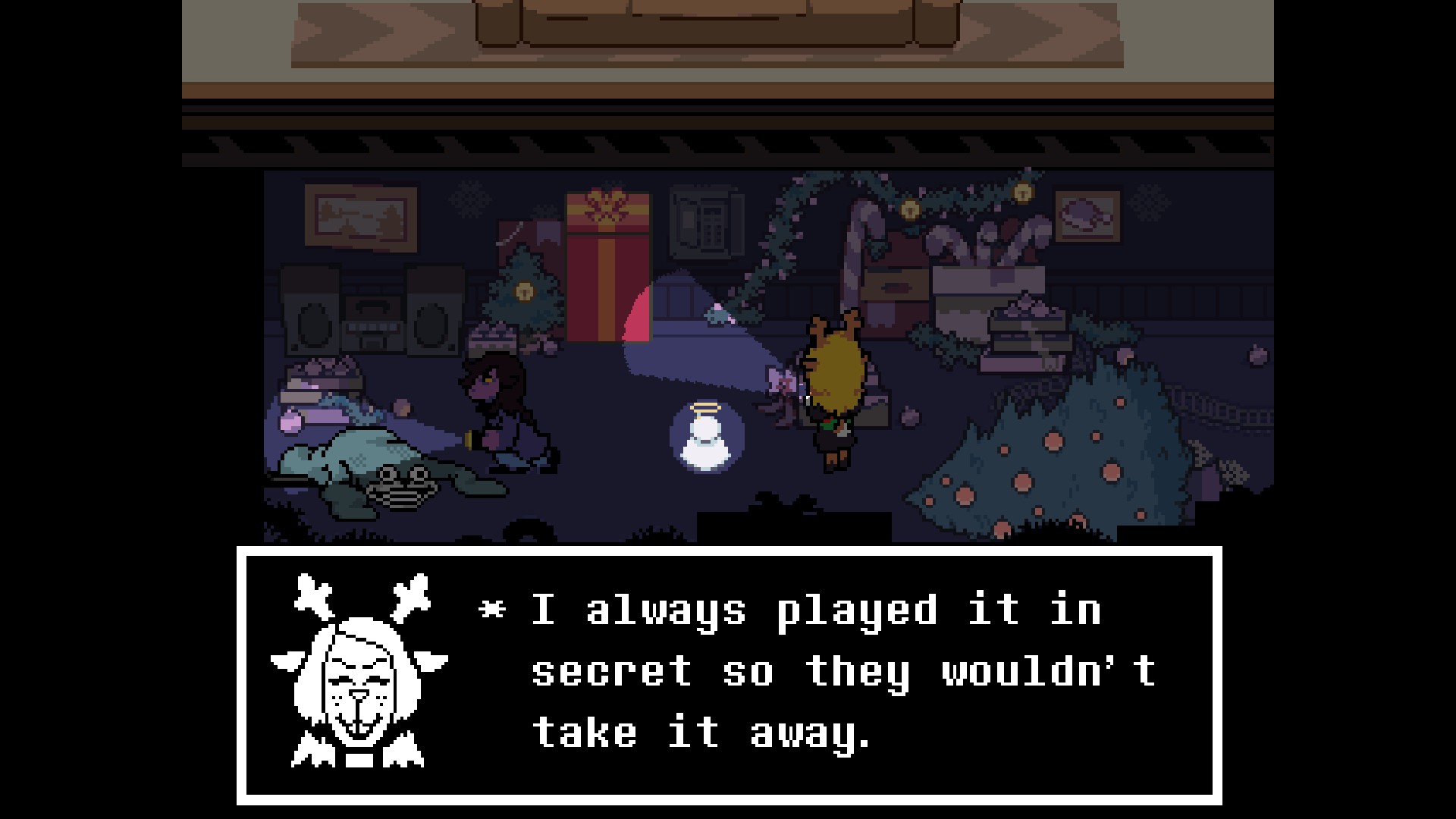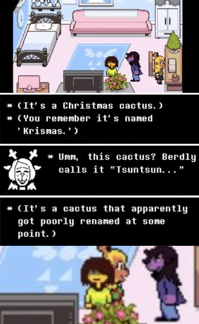 >>729246410>Christmas is considered evil in Deltarune and is associated with the villain Carol