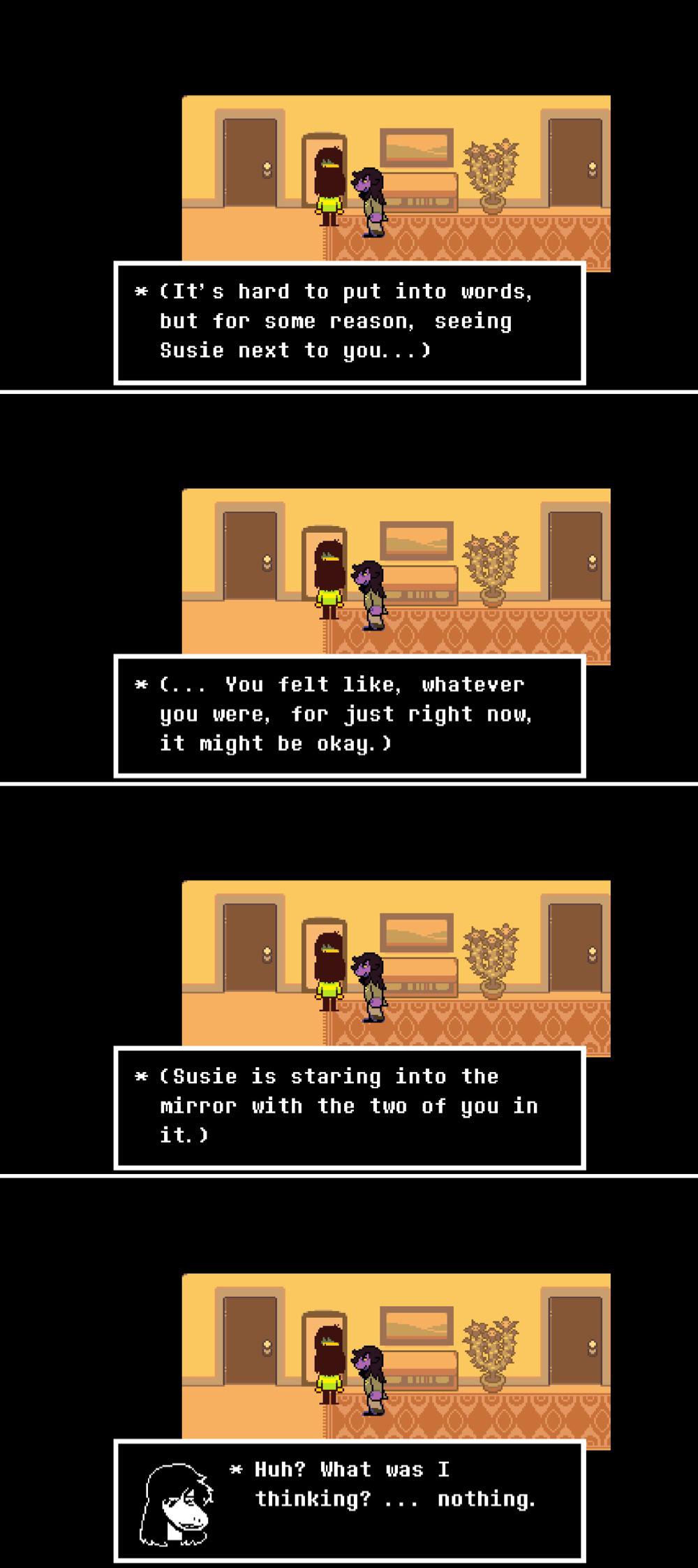 >>729247378My explanation for that is the same explanation for the inclusion of the rose in the Weird Route. I'm sure Toby was aware that it could be interpreted as symbolism for sexual assault, but he did not believe most people would interpret it as that, but once he realized that there was a considerable amount of people who did interpret it that way, he changed it. Same thing with the Kris and Susie scenes, I'm sure Toby is aware that they could be interpreted as romantic, but I think he believes most people would not necessarily see it that way and will realize that Susie and Noelle is the romance that the game is going for.