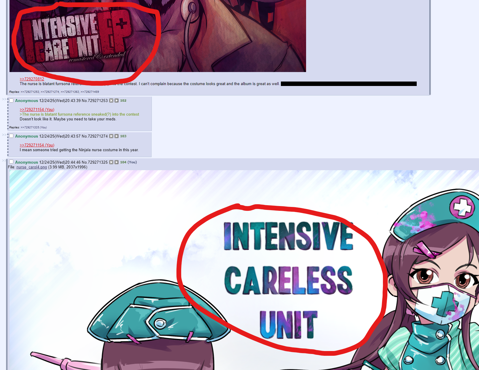 >>729271154>The nurse is blatant furrsona reference sneaked(?) into the contestDoesn't look like it. Maybe you need to take your meds.